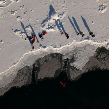 Great Slave Lake Ice Road – Winter drive across frozen depths.