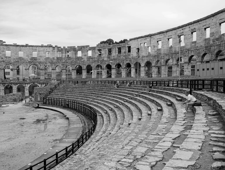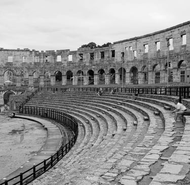 Pulska Arena, ponosno stoji skoro 2.000 godina. Izgrađena u 1. stoljeću nove ere, pod carem Vespazijanom, jedna je od najbolje očuvanih rimskih amfiteatara na svijetu. Zamislite — 20.000 gledalaca, zvuk mačeva, drama gladijatora koji se bore za slavu.
